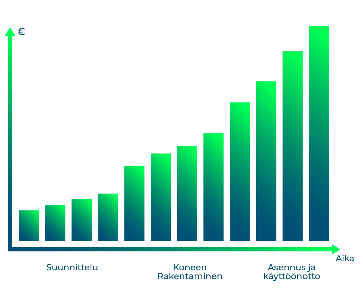 Mitä varhaisemmassa vaiheessa turvallisuus huomioidaan, sitä vähemmän siitä kertyy kustannuksia. Puutteiden korjaaminen suunnitteluvaiheen jälkeen aiheuttaa viivästyksiä ja moninkertaistaa korjaavien toimenpiteiden aiheuttamat kustannukset.